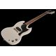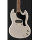 La guitarra es un poco cara para lo que es, sencilla, sin adornos… solo un trozo de madera con la forma de una SG y con lo mínimo para que suene (1 pastilla sin posibilidad de ajuste en altura, 1 volumen y un 1 tono, un puente que no da mucho juego para la entonación y acción), aun así, todo está perfectamente montado de fábrica y ajustado… vino perfectamente entonada, con la acción un poco alta, pero la bajé y que quedó a mi gusto en solo 1 minuto. No sé si ha sido suerte o si es la tónica con esta guitarra.