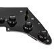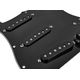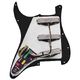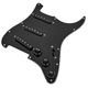 Mojotone 58 Quiet Coil w/ Hot Bridge Pickguard BK; Pre-Wired Pickguard for ST-Style Electric Guitar, Pickguard Design: SSS, Standard 11-Hole, Pickguard Colour: Black 3-Ply; Pickup Construction: Noiseless Single Coils; Output: Vintage & High; Positions: Bridge, Middle & Neck; DC Resistance (Bridge): 11,6 kOhms, (Middle): 5,9 kOhms, (Neck): 5,9 kOhms; Magnet Material: Alnico 5, Cover Colour: Black; no soldering required, Just drop in and play; Hum-Cancelling Strat pickups that look and sound like real Single Coils with minimal parts and adhering to actual Vintage Single Coil attributes; matched Resonant Peak Frequency and Inductance let them sit right in the Frequency Response and Feel of a Traditional Single Coils without having to compensate for it; the Hot "Quiet Coil" in the bridge position has more Bass and Mids, it also offers a more balanced output between positions and better sustain; Controls: 1 x Volume, 1 x Tone (Bridge Pickup), 1 x Tone (Middle & Neck Pickup); Switch: 5-Way; Switch Positions: 1: Bridge, 2: Bridge & Middle, 3: Middle, 4: Middle & Neck, 5: Neck; Scope of Supply: Pickguard, Pickups, 3 x CTS 500k Custom Split Shaft Potentiometers (9,5 mm/0,375" Bushing length), CRL 5-Way Switch, Switchcraft Mono Input Jack, Vitamin T Oil Filled .047uf Capacitor, Pre-Tinned Cloth Covered Wire; Volume mod (Treble Bleed); Made in USA