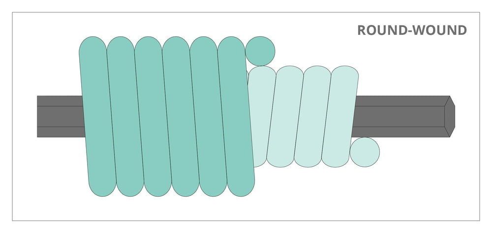 La base di queste corde è costituita da un filo tondo in acciaio inossidabile la cui superficie viene levigata dopo il processo di avvolgimento.