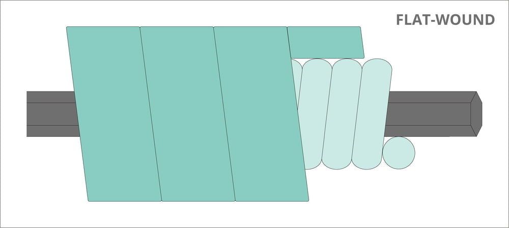 Al posto di un filo rotondo per l'avvolgimento, nelle Flatwound viene utilizzato un filo piatto. Grazie alla superficie liscia, i rumori prodotti dallo sfregamento sono ridotti al minimo. Anche lo sporco non ha alcuna possibilità di depositarsi sulle corde, che hanno quindi una durata di vita notevolmente superiore rispetto alle Roundwound. Queste ultime sono tuttavia utilizzate piuttosto raramente dai chitarristi/bassisti di strumenti elettrici e dai chitarristi acustici flat top: le corde sono infatti piuttosto rigide, tendono ad avere un sustain ridotto e un suono relativamente “opaco”. Esse sono però molto apprezzate dai chitarristi jazz, che le utilizzano come parte integrante del loro sound. Anche i musicisti che suonano bassi fretless apprezzano la superficie liscia delle corde flatwound, che protegge la tastiera e garantisce una performance fluida.
