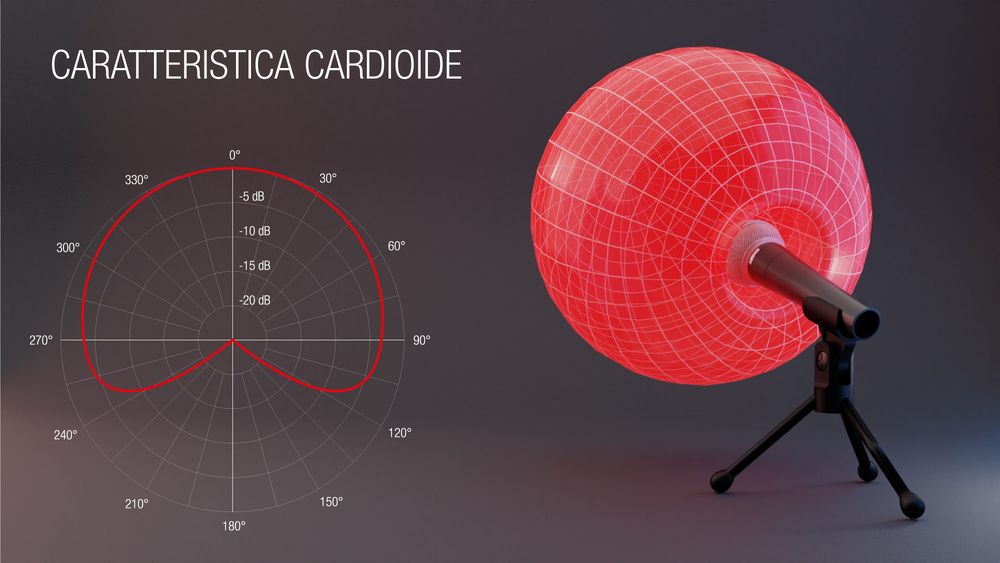Un microfono cardioide cattura il suono in modo più intenso nella parte anteriore rispetto ai lati ed è molto poco sensibile ai suoni provenienti dalla parte posteriore. Se il microfono per voce scelto fosse cardioide, sarà necessario posizionare il monitor del cantante dietro il microfono.