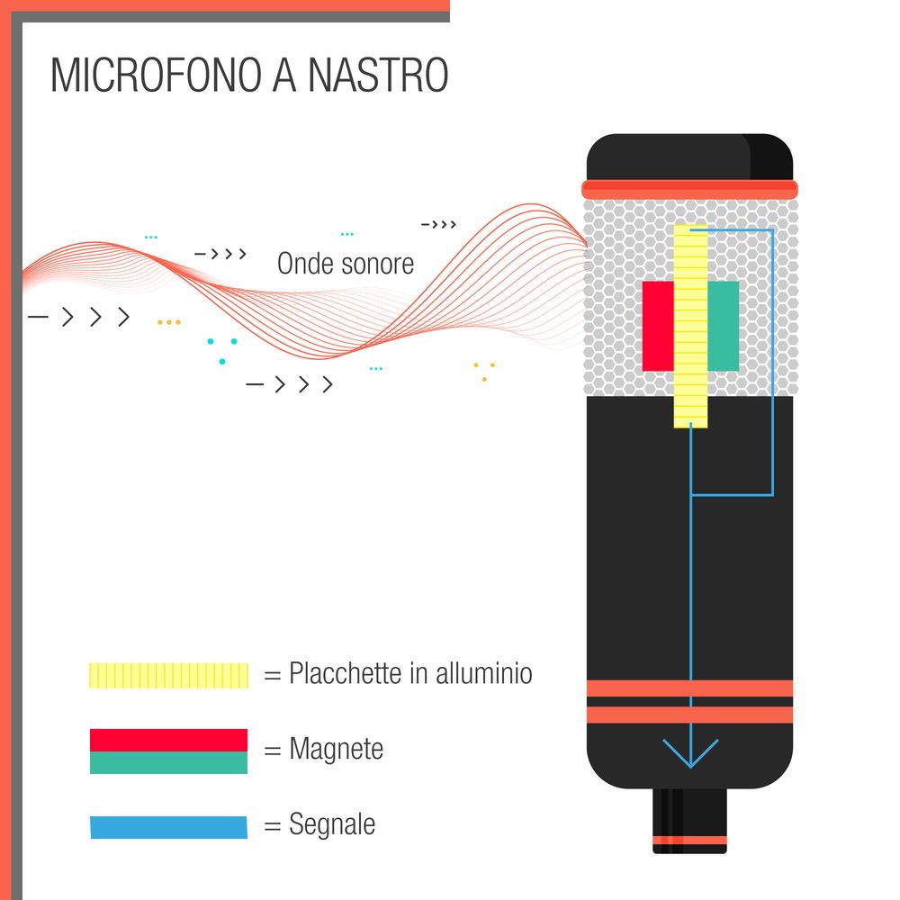 Oltre alla tipologia appena descritta, anche il microfono a nastro appartiene alla categoria dei modelli dinamici. Esso presenta tuttavia una struttura molto più delicata rispetto ai modelli a bobina mobile e può dunque essere più facilmente soggetto a danneggiamento, motivo per cui lo si ritrova molto raramente sui palchi. Tutti i comuni microfoni dinamici pensati per le esibizioni dal vivo sono a bobina mobile.