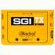 Radial SGI Stereo TX/RX - Signal processor; stereo line driver transmission system for instrument signals; balanced transmission of two instrument signals up to 100 m; consisting of SGI Stereo TX transmitter and SGI Stereo RX receiver; connection (TX to RX): Cat5 Ethernet cable; connections (SGI Stereo TX): 2x 6.3 mm jack (instrument inputs), 2x 6.3 mm jack (thru outputs), balanced XLR (output); Connections (SGI Stereo RX): balanced XLR (input), 2x 6.3 mm jack (outputs); Premium Jensen transformers; SGI Stereo RX: Ground lift switch, 180-degree phase reversal on left output, no power supply; SGI Stereo TX: 9-18 V pedalboard power supply; Total weight: 1.02 kg; Includes power supply