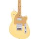 Reverend Charger Cleancut PY, T-Style electric guitar; body: Korina; neck: roasted maple; fingerboard: roasted maple; neck mount: bolt on; neck form: Medium Oval; 22 Medium Jumbofrets; nut: Boneite; nut width: 43 mm (1,69"); scale: 648 mm (25,5"); fingerboard radius: 305 mm (12"); pickups: Reverend Cleancut (bridge) - Reverend Cleancut (neck); controls: Volume (w/ Treble Bleed), Tone, Bass Contour; switch: 3-way; Bridge: TOM Style w/ Stop Tail; hardware finish: Chrome ; tuners: Reverend Pin-Lock; colour: Powder Yellow; original strings: .010-.046