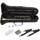 This trombone arrived in a quite sturdy gig bag and it has a mouthpiece. The instrument feels right, the response is fantastic considering the price, it just works well and is perfect for beginners. The slide tends to start gripping pretty soon but it isn't something that can completely stop you when playing, rather it feels kinda stiff.